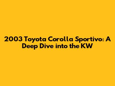Understanding the 2003 Toyota Corolla Sportivo and Its KW