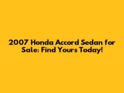 2007 Honda Accord Sedan For Sale: Find Yours Today!