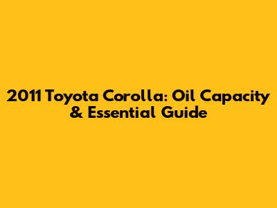 2011 Toyota Corolla: Oil Capacity & Essential Guide