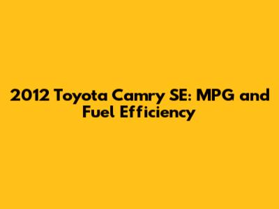 - Tips for Improving Real-World MPG: Based on user reports, here are some tips for improving your real-world MPG in the 2012 Toyota Camry SE: