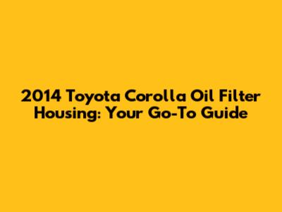 2014 Toyota Corolla Oil Filter Housing: A Comprehensive Guide