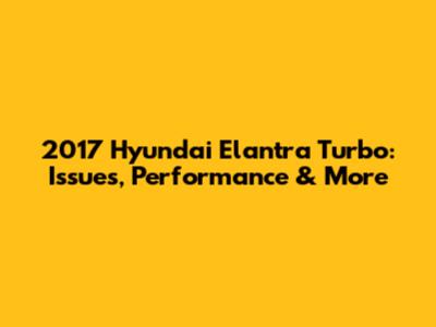 2017 Hyundai Elantra Turbo: Issues, Performance & More