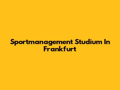 Sportmanagement Studium In Frankfurt