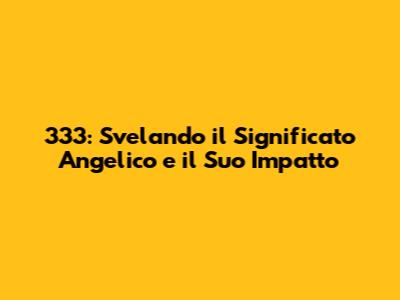 Ciao amici! Siete mai stati incuriositi dal numero 333? Magari lo avete visto comparire in momenti inaspettati, sull'orologio, in una targa, o in qualsiasi altro posto. Beh, preparatevi a scoprire il suo significato angelico, un messaggio che gli angeli cercano di comunicarci. In questo articolo, esploreremo a fondo cosa significa vedere 333, come interpretare questo segnale e come può influenzare la nostra vita. Siete pronti a fare un viaggio nel regno spirituale? Immergiamoci insieme nel mistero di 333!