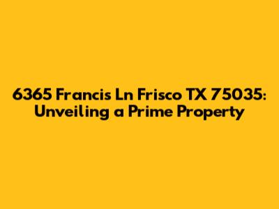 Hey guys! Today, we're diving deep into a property that has caught our eye: 6365 Francis Ln, Frisco, TX 75035. This isn't just any address; it's a gateway to understanding what makes a location truly special. We’ll explore everything from the property's intrinsic characteristics to the surrounding community vibes, school districts, and all the essential amenities that make this spot highly desirable. Think of this as your ultimate guide to everything you need to know about this address.