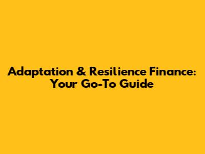Adaptation & Resilience Finance: A Comprehensive Guide