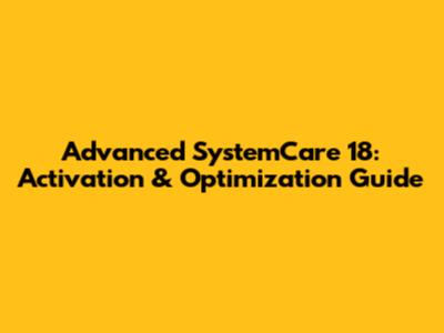 Advanced SystemCare 18: Activation & Optimization Guide