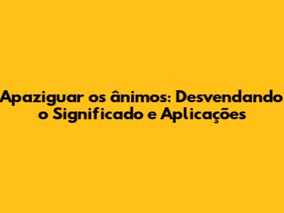 Apaziguar Os Ânimos: Desvendando O Significado E Aplicações