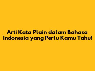 Arti Kata 'Plain' Dalam Bahasa Indonesia Yang Perlu Kamu Tahu!