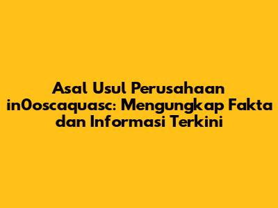 Asal Usul Perusahaan In0oscaquasc: Fakta Dan Informasi Terkini