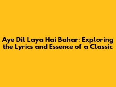 Aye Dil Laya Hai Bahar: Unveiling The Magic Of A Timeless Song