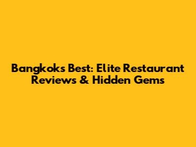 Bangkok's Best: Elite Restaurant Reviews & Hidden Gems