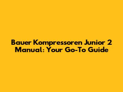 Bauer Kompressoren Junior 2 Manual: Your Go-To Guide