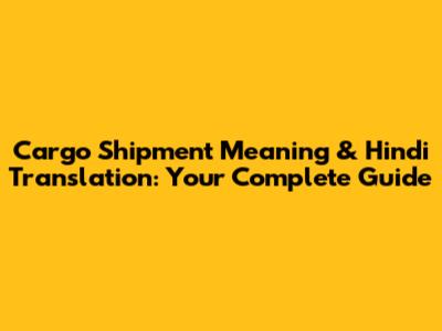Cargo Shipment Meaning & Hindi Translation: Your Complete Guide