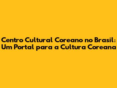 A História e a Missão do Centro Cultural Coreano
