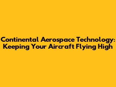 Continental Aerospace Tech: Your Aircraft's Lifeline