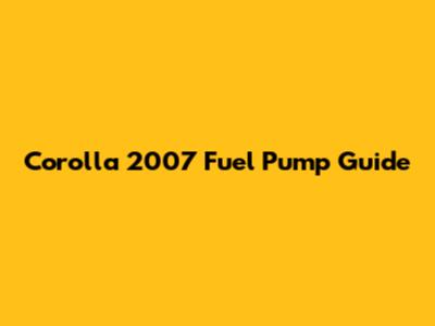 Corolla 2007: Fuel Pump Guide