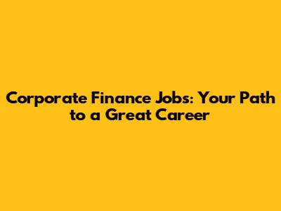 Corporate Finance Jobs: Your Path To A Great Career