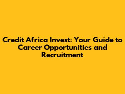 Credit Africa Invest: Career Opportunities & Recruitment