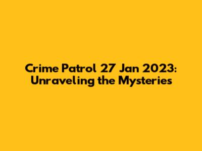 Crime Patrol 27 Jan 2023: Unraveling The Mysteries