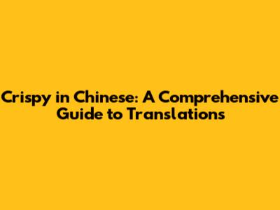 Crispy In Chinese: A Comprehensive Guide To Translations