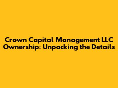Hey guys! Today, we're diving deep into a question that might be on your mind: who owns Crown Capital Management LLC? It's a pretty common query when you're looking into investment firms or trying to understand the landscape of financial services. We're going to break down the ownership structure of Crown Capital Management LLC, shedding light on the key players and their roles. Understanding ownership is super important, whether you're a potential investor, a business partner, or just curious about how these big financial outfits work. It gives you a clearer picture of the company's vision, its stability, and its overall direction. So, stick around as we unpack all the nitty-gritty details about who's at the helm of Crown Capital Management LLC.