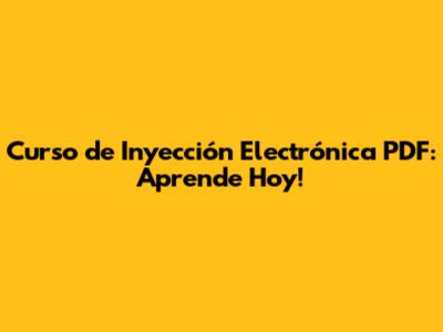 Curso De Inyección Electrónica PDF: Aprende Hoy!