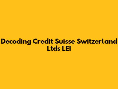 Decoding Credit Suisse Switzerland Ltd's LEI