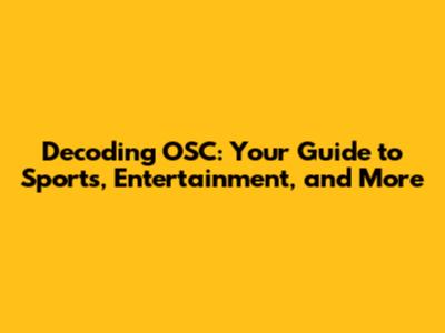 Decoding OSC: Your Guide To Sports, Entertainment, And More