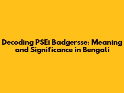 Decoding PSEi Badgersse: Meaning And Significance In Bengali