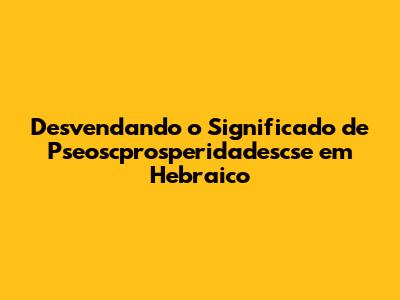 Desvendando O Significado De Pseoscprosperidadescse Em Hebraico