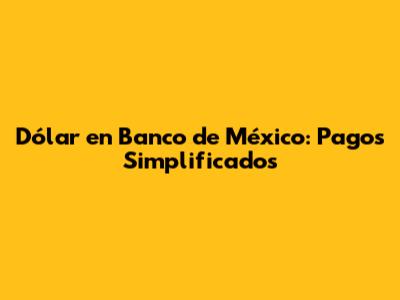 Dólar En Banco De México: Pagos Simplificados