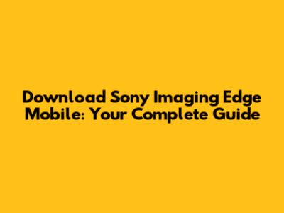 Download Sony Imaging Edge Mobile: Your Complete Guide