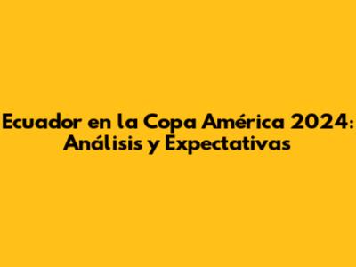 Ecuador En La Copa América 2024: Análisis Y Expectativas
