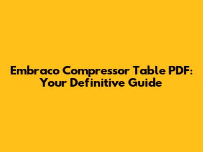 Embraco Compressor Table PDF: Your Definitive Guide