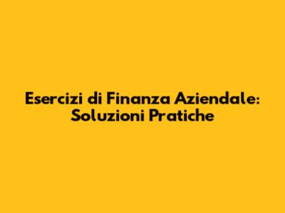 Dove Trovare Esercizi di Finanza Aziendale di Qualità