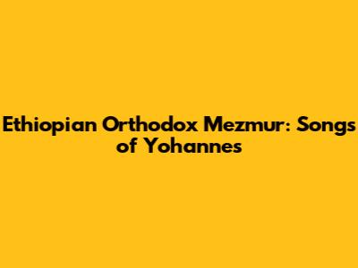 Ethiopian Orthodox Mezmur: Songs Of Yohannes