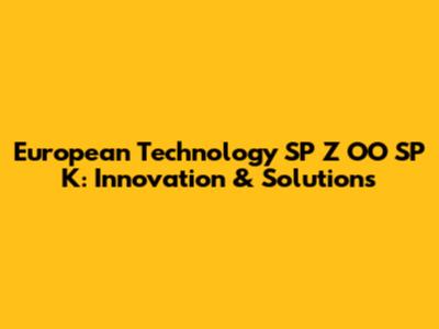 Unveiling European Technology SP Z OO SP K: A Deep Dive
