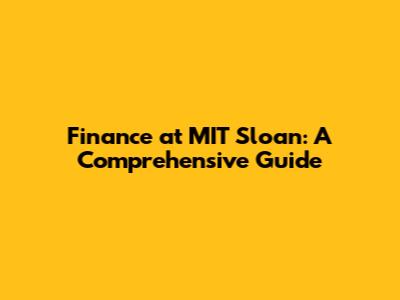 Finance At MIT Sloan: A Comprehensive Guide