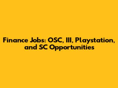 Finance Jobs: OSC, III, Playstation, And SC Opportunities