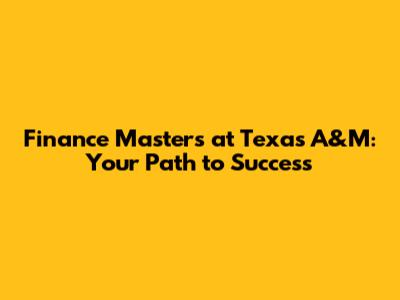 Finance Masters At Texas A&M: Your Path To Success