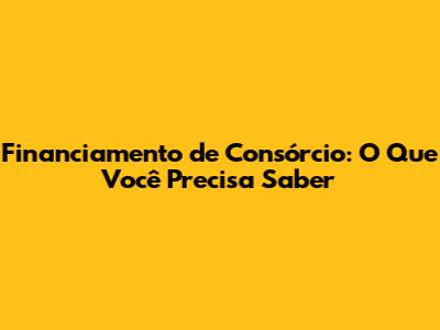 Financiamento De Consórcio: O Que Você Precisa Saber