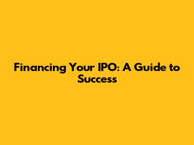 Financing Your IPO: A Guide To Success
