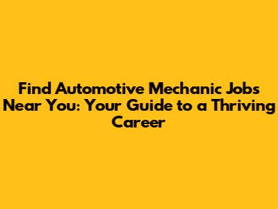 Find Automotive Mechanic Jobs Near You