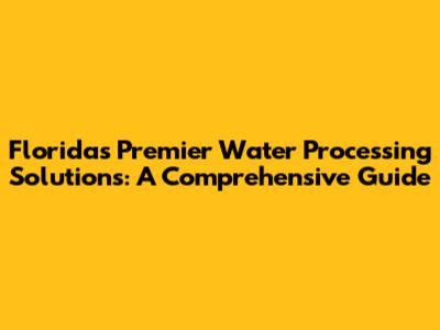 Florida's Premier Water Processing Solutions: A Comprehensive Guide