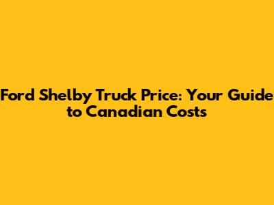Ford Shelby Truck Price: Your Guide To Canadian Costs