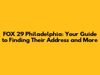 FOX 29 Philadelphia: Address & What To Know