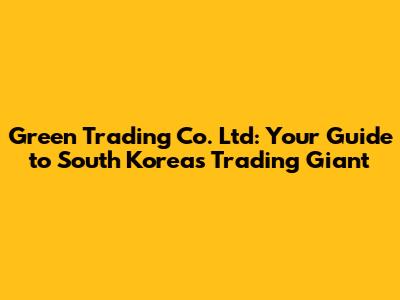 Hey guys! Ever heard of Green Trading Co. Ltd in South Korea? If you're into international trade, or just curious about how global business works, you've probably stumbled across this name. This article is your deep dive into everything you need to know about Green Trading Co. Ltd, exploring its history, operations, and its significant role in South Korea's thriving economy. We're going to break down their business, look at their strategies, and even peek at their impact on the global market. Ready to get started? Let’s jump in!