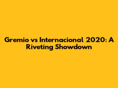 Gremio Vs Internacional 2020: A Riveting Showdown