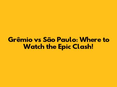 Grêmio Vs São Paulo: Where To Watch The Epic Clash!